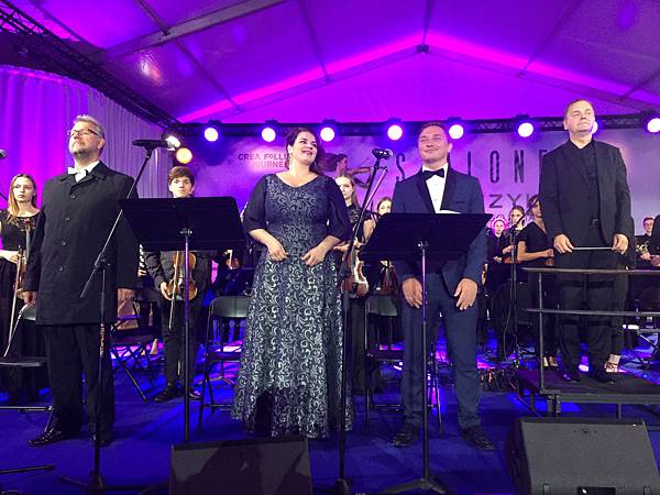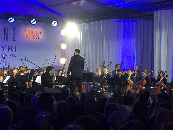 當天下午和晚上除了早被訂光的劇院演出之外,在劇院外頭也有免費臨時搭帳篷的演出。我們幸運的坐在最前頭欣賞了兩、三個鐘頭,雖然是義務性慈善演出,但水準之高,不下於其他毆美國家。波蘭是一個愛好音樂的國家!