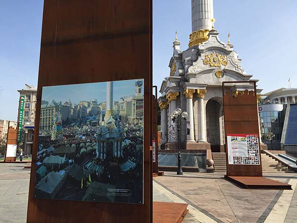 1991年的獨立於蘇聯的運動纪念碑,圖片就用心的被立於實際發生的地點 ,對比生動。 西烏克蘭在1941年前仍屬於波蘭,近代獨立於蘇聯,也是有它的原因。