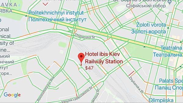 飛機抵達基輔機場,搭乘直達火車站的公車,下車即可看到新的旅館 Ibis Kiev Railroad station,步行只需三分鐘 。新型旅館就位於火車站旁。交通方便,搭乘地鐵也只須步行約約五分鐘。